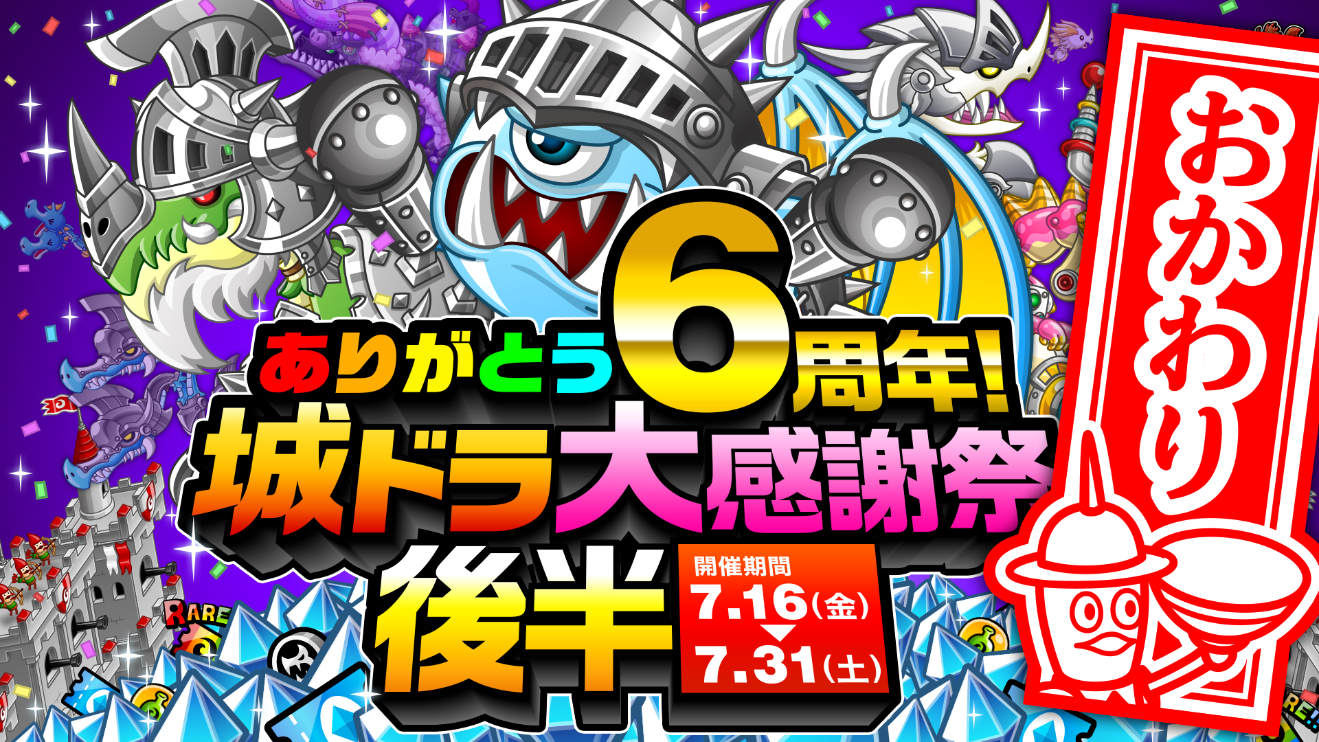 『城とドラゴン』7月16日(金)より「ありがとう6周年!城ドラ大感謝祭おかわり(後半)」開催!