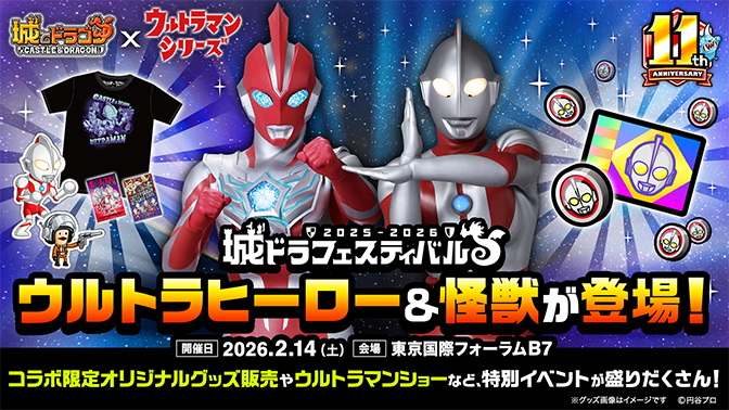 ・引用リポスト賞:城ドラ11周年フェスで販売するコラボグッズ(Tシャツ・アクリルキーホルダー2種・ポストカード2種)抽選で1名様